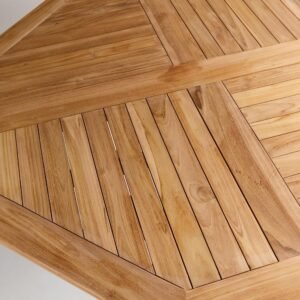 - A Square Teak Dining Table – Napais crafted from durable, weather-resistant teak, making it ideal for patios and gardens. Its natural golden-brown finish and sturdy construction provide both elegance and longevity, withstanding sun, rain, and humidity. Perfect for alfresco dining, this table brings timeless style and functionality to any outdoor space.