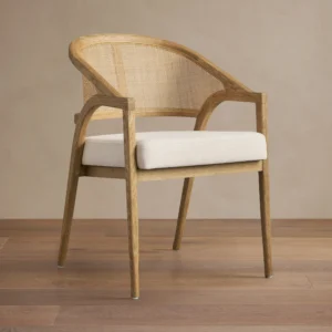- A teakwood rattan dining chair combines the sturdy, weather-resistant qualities of teak wood with the natural, woven texture of rattan. This chair features a solid teak frame for durability and a rattan seat or backrest for added comfort and visual appeal. Its elegant, airy design makes it ideal for both indoor and outdoor dining spaces, blending classic and tropical styles.