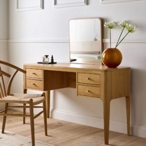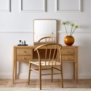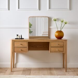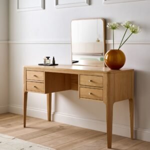 A teak dressing table is a stylish and functional piece of bedroom furniture crafted from durable teak wood. It typically features a smooth tabletop, one or more drawers for storing cosmetics and accessories, and often includes a mirror for convenience. Teak’s natural grain and rich colour make these dressing tables both elegant and long-lasting, adding a touch of luxury to any room.