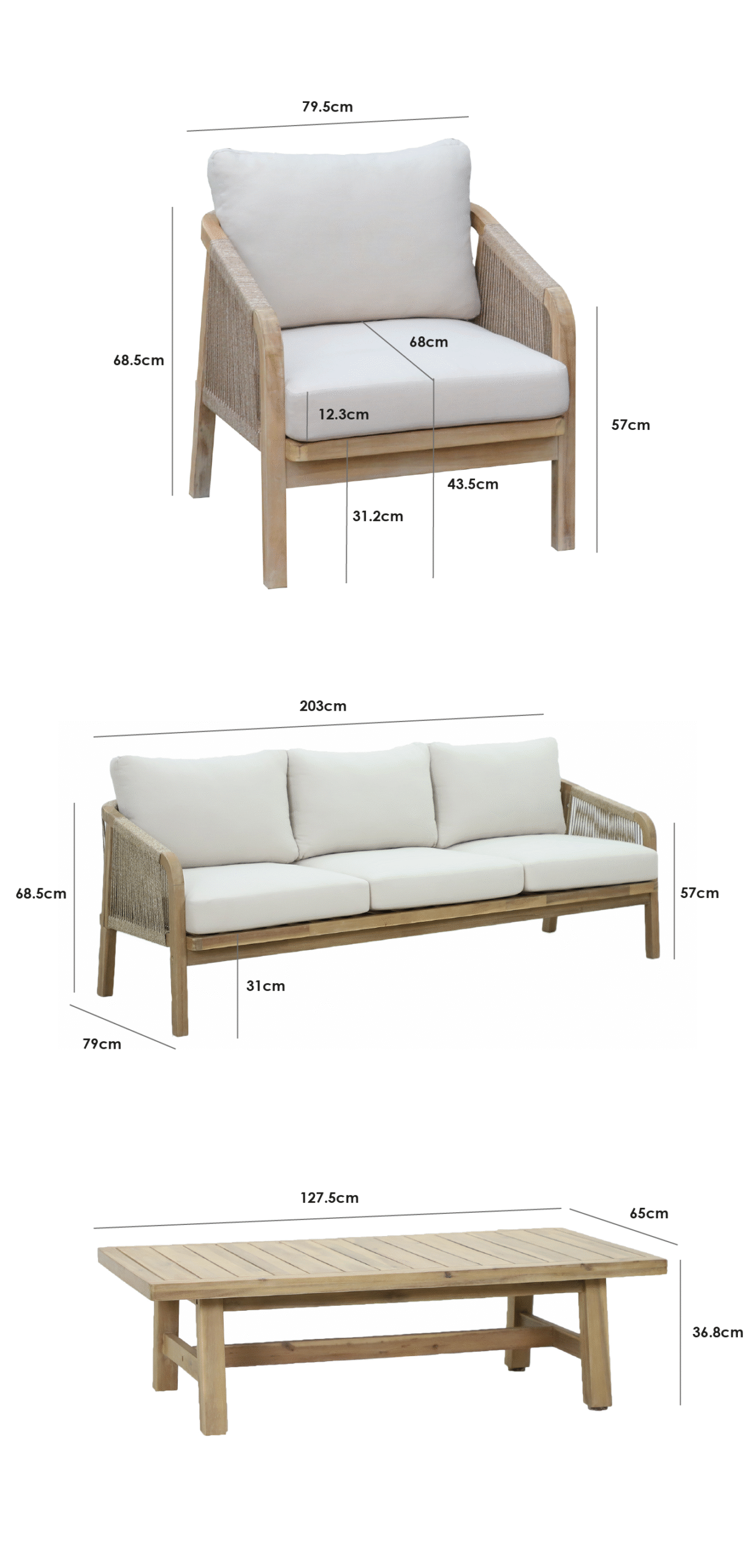 Bring a cosy corner of your garden to life with the Quay Collection lounge set. Whether you prefer to sit back and unwind with a good book or watch the world go by sipping an ice-cold drink, this timeless lounge set is a must-have to complete your mini oasis. Comprising of a classic meets modern side table, paired with two luxurious lounge chairs.