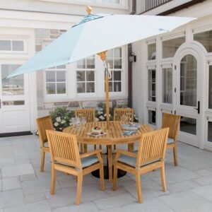 - A outdoor teakwood dining table is crafted from durable, weather-resistant teak, making it ideal for patios and gardens. Its natural golden-brown finish and sturdy construction provide both elegance and longevity, withstanding sun, rain, and humidity. Perfect for alfresco dining, this table brings timeless style and functionality to any outdoor space.